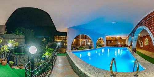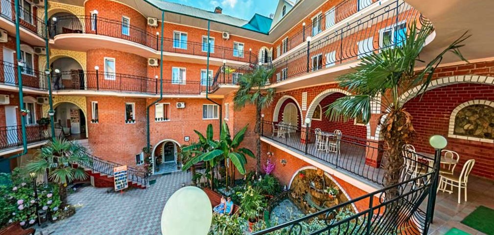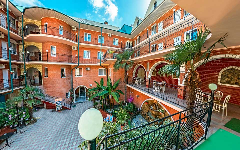 Инфраструктура: просторный внутренний дворик с пальмами и декоративным фонтаном из натурального камня, крытый большой бассейн, бильярд и терраса с шезлонгами для загара. Бесплатный интернет - wi-fi. Вечером работают караоке-бар.